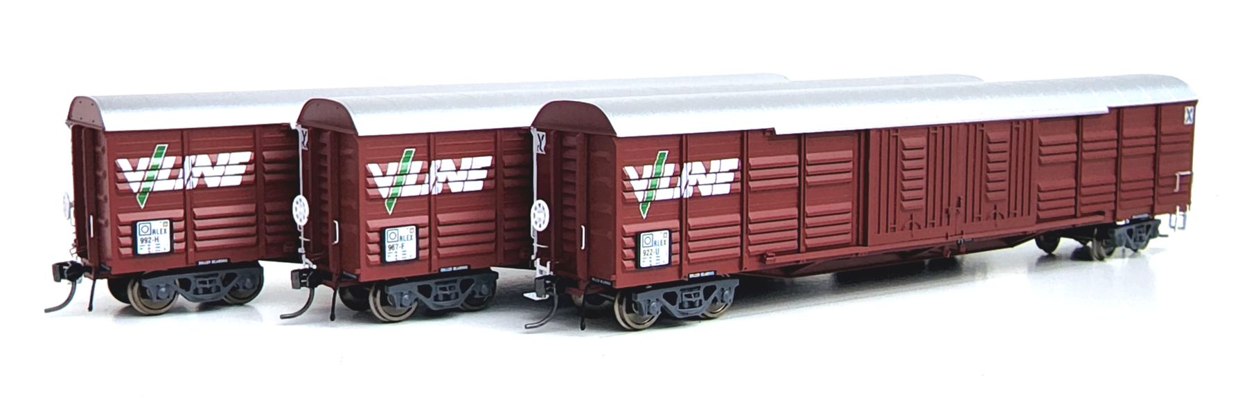 Style: 3 RLEX Vans with V/Line logos & National Rail Code Boards.